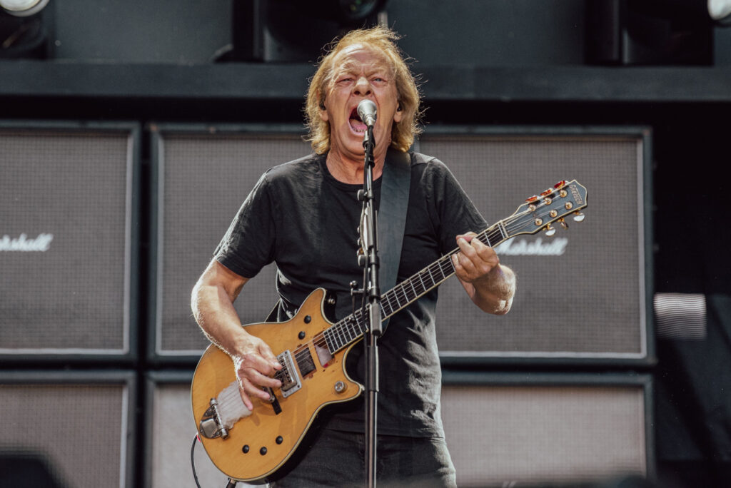 De acordo com a assessoria da banda, o músico, que é sobrinho dos irmãos Angus Young e Malcolm Young, foi internado por precaução e está passando por uma bateria completa de exames. Apesar do susto, o estado de saúde é considerado bom.